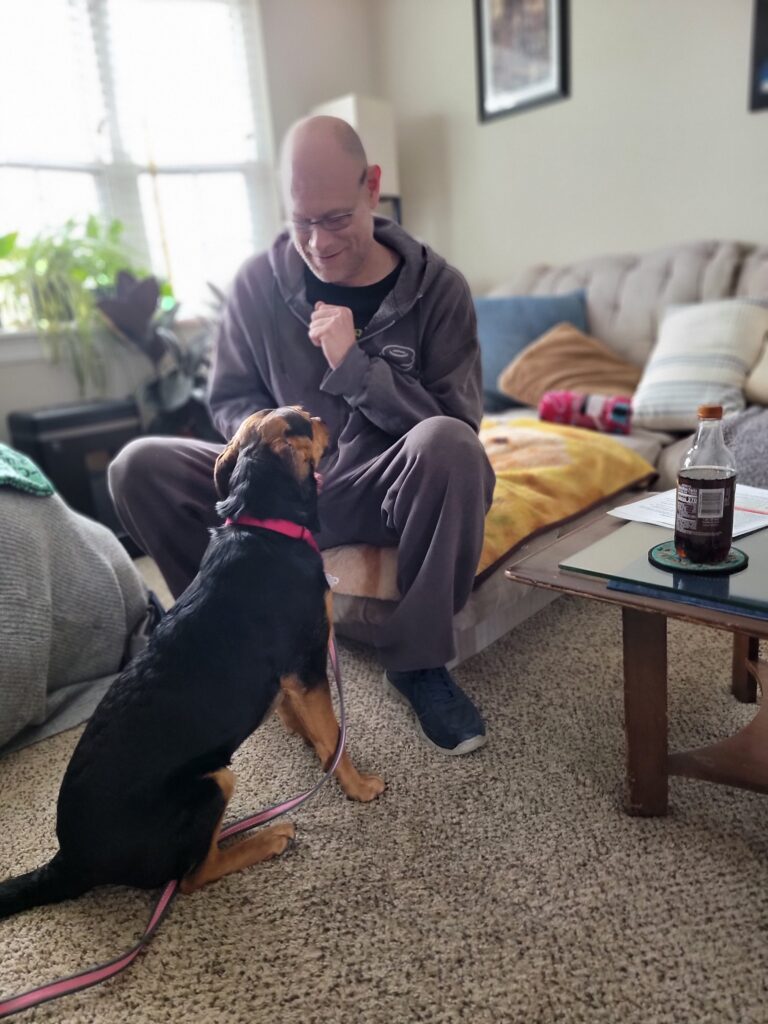 Hi, I’m Mirai and I’m finally home! I couldn’t be more excited to have been placed with my dad, Eric Swenson, an American hero, a veteran who served as Security Police while in the Air Force. My dad was looking for a dog to add to his life with his girlfriend, Kana, of 16 years.