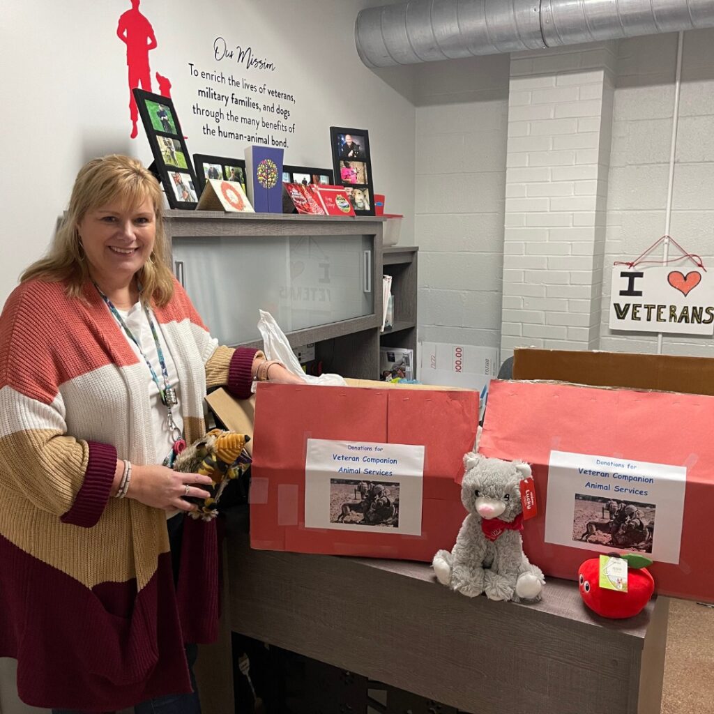 After VCAS President & CEO Joshua Doran and Patriot Affairs Lead Tom Lennon spoke at the school in November, they held a supply drive for our dogs – resulting in two boxes of great supplies for our companion animals.