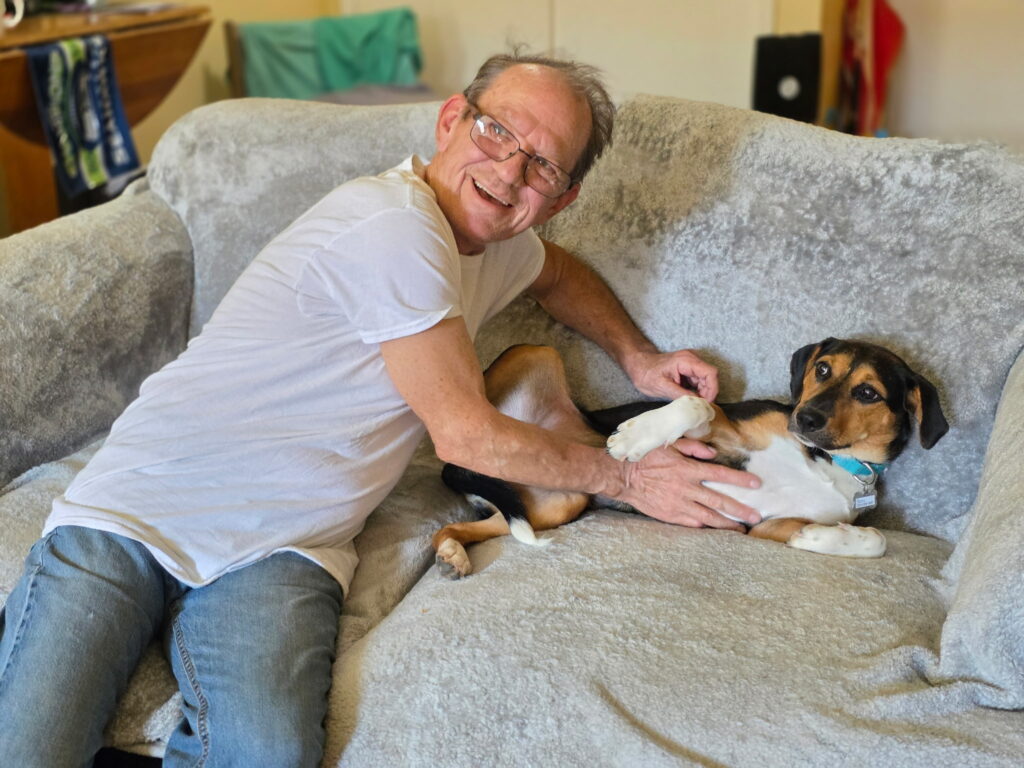 I was fortunate to stay with the amazing foster parents, Rachel and Adam, until my forever family came along. That is when I met Matthew, a Navy veteran. He was searching for a dog who would love to go everywhere with him, take long walks, and explore new places. From the moment we met, I knew we were meant to be.