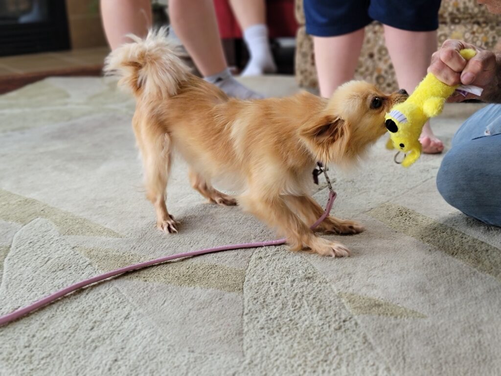 Jim and his family were looking for a small dog who would fit in with their busy family, and I think I am the perfect fit. I am a bundle of energy and love to play. They think I am a 2-3-year-old, 8-pound Pomeranian mix. VCAS found me at the Humane Society of Delaware County after I was picked up as a stray in Pike County.
