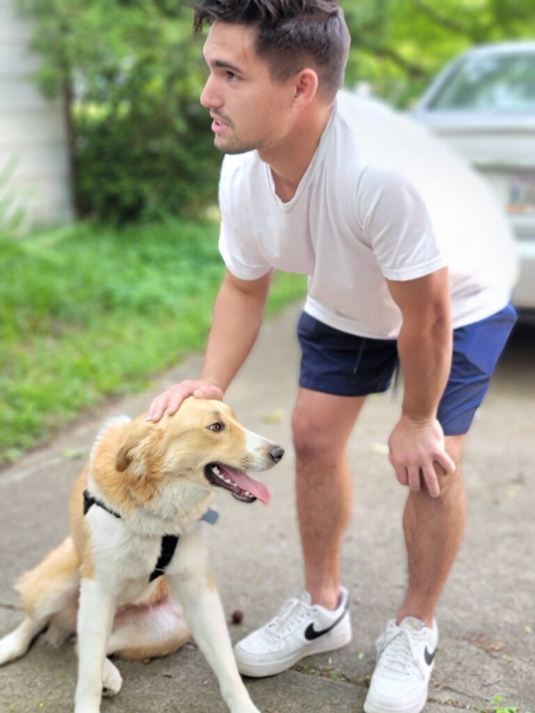 He was looking for an active, large dog that also liked to cuddle. I am a one-year-old, 50-pound mixed breed dog who was found as a stray and brought to Gigi’s. They took me in and took care of all of my medical needs while I waited for a home.