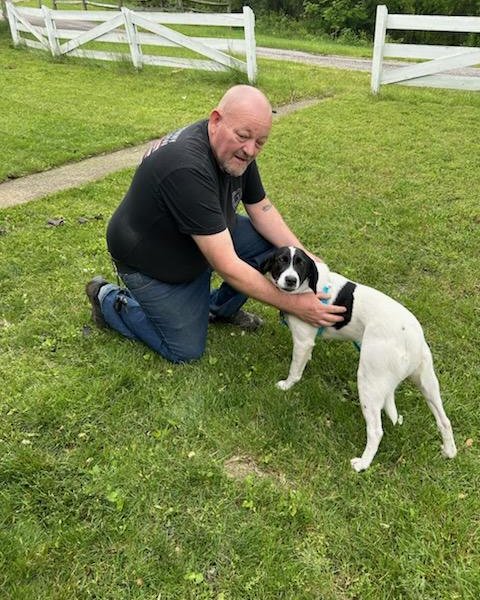 My dad is a Navy veteran who served as a Boatswain Mate for four years. He was looking for a companion who was a calming presence and medium-sized.