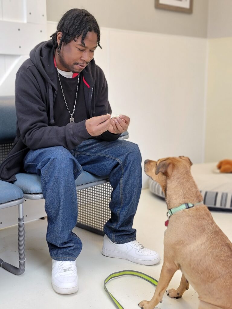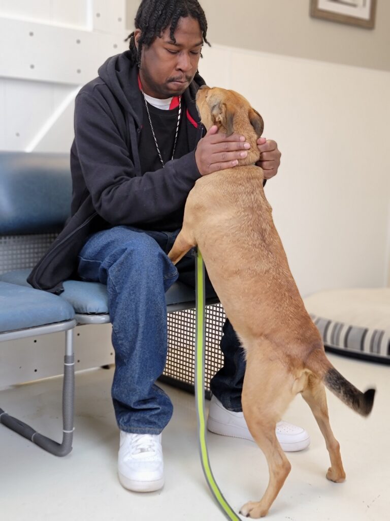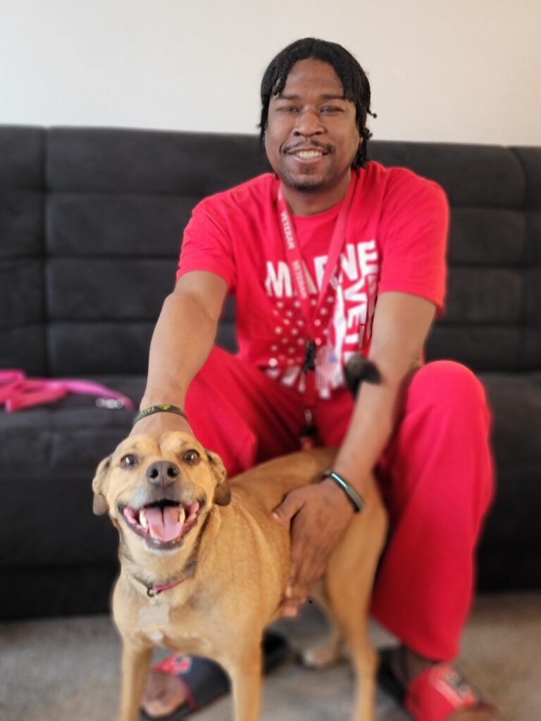Roshawn is a Marine veteran who reached out to VCAS about finding a new friend – He thought that a small dog would be the perfect fit for him. As it turns out, we were able to find a Princess for Roshawn! She is a 6 year old, 38 pound mixed breed from the Humane Society of Delaware County. Princess is a sweet little girl who loves belly rubs and to snuggle with people. VCAS sends a warm thank you to Lynn Nauman who opened her home and fostered Princess.